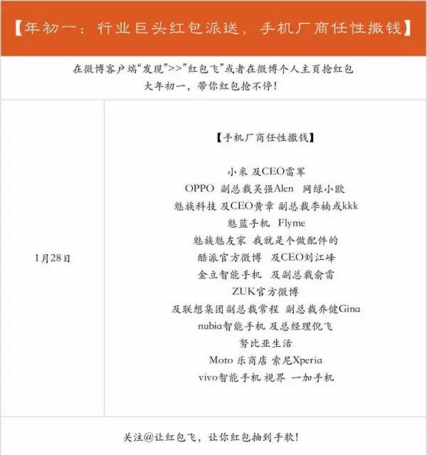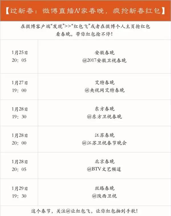 其次,微博今年加入正值风口的直播、短视频红包,通过两者的娱乐性强、互动性强的特点,加深社交媒体的影响力,同时实现商业变现。用户可以根据微博公布的红包日历,在特定时间进入特定主播的直播间“抢红包”。同时,在网络红人在微博发布的原生视频中也将不定时发放红包。直播、短视频是今年和去年的风口。且春节是举家欢庆的日子,直播和短视频的参与门槛低,更适合全民。