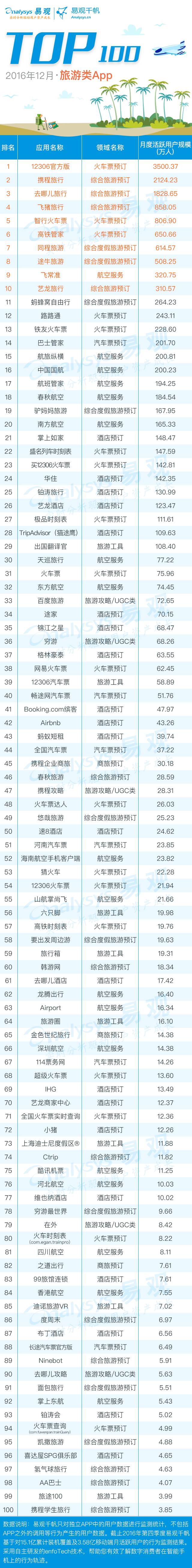 再过一天,就是举国欢庆集体玩耍的日子了,难得假期,你是陪家人还是出去浪?出行计划制定好了吗?不想有“我可能过了假春节”的感慨,这时候你就需要一款恰好的旅游“自救”App。我们基于易观千帆12月移动应用大数据,筛选了旅游类AppTOP100榜单供你出行参考!