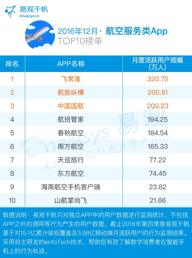 Analysys易观分析认为,随着航空公司直销体系建设的进一步推进,航司移动端用户规模整体呈现增长趋势,受季节性因素影响,12月指标出现下滑,在2017年直销渠道与代理渠道的竞争中,航空公司仍需在多元化应用层的功能实现,为用户提供切实的增值服务,优化产品体验,提供与第三方代理和平台相区别的会员服务,才能进一步激活用户活跃度,并提升用户粘性。