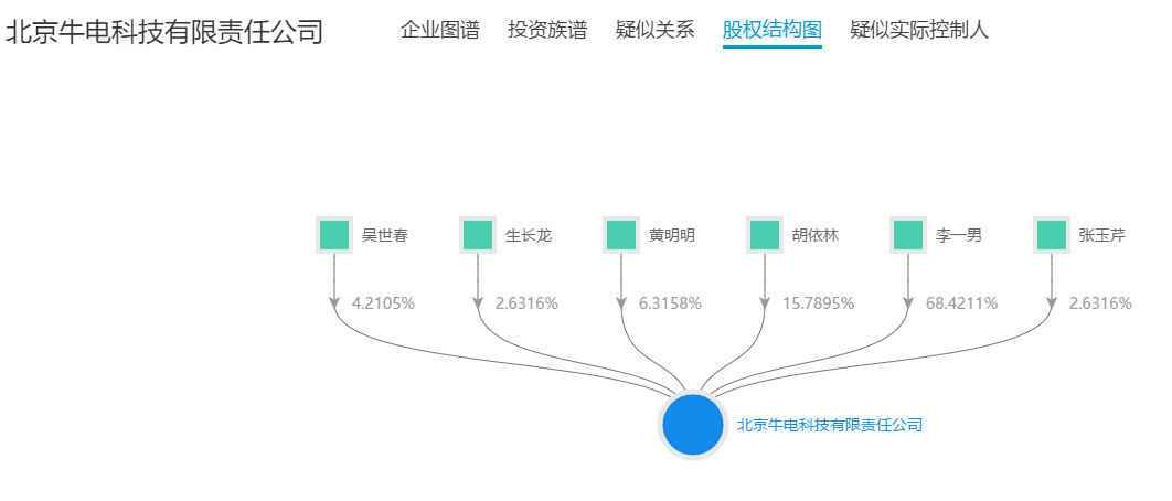 那么,李一男呢?他在被羁押的这段时间是否控制着企业的发展我们不得而知,但是也许我们能从牛电科技目前的股权结构中找到一些信息。