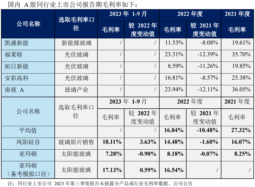 另外,亚玛顿还宣称:“由于行业内原片供应商陆续进入深加工行业,同行业上市公司中,除亚玛顿需通过外购光伏玻璃原片进行玻璃深加工外,其余上市公司均拥有光伏玻璃原片及镀膜钢化深加工产能,毛利率为光伏玻璃原片生产环节与深加工环节的综合结果,与凤阳硅谷毛利率不具有可比性。”