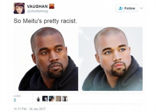 据外媒报道,近日有国外网友在推特上晒出自己美图后的自拍照,认为美图存在种族歧视现象。