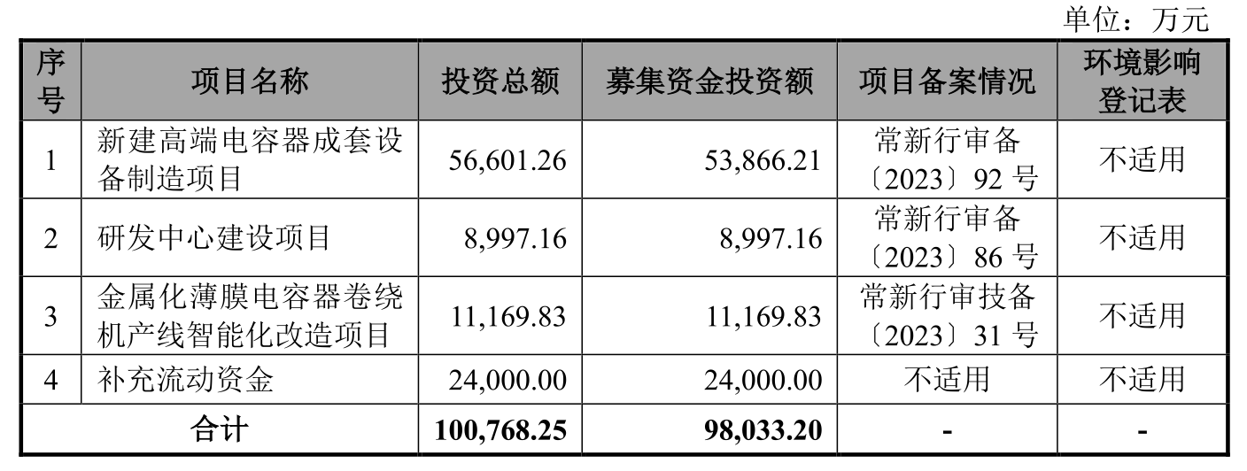 说明书显示,晟威机电从事薄膜电容器制造设备研产销,目前产品包括薄膜电容器卷绕机、金属薄膜镀膜机及电容器薄膜分切机,此外还提供相关设备配件销售以及金属薄膜镀膜加工业务。晟威机电客户群体覆盖松下、KEMET、尼吉康、TDK、指月电机等国际企业,以及比亚迪(002594.SZ)、法拉电子(600563.SH)、江海股份(002484.SZ)、王子新材(002735.SZ)、艾华集团(603989.SH)、铜峰电子(600237.SH)等国内上市公司。