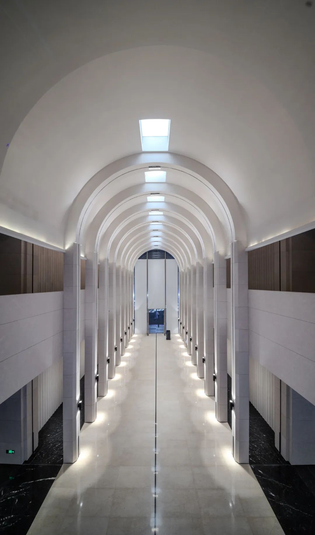 示范区是项目产品力的先行表达,产品的能级和标准能有多高,从示范区就能窥探一二。上璟润府营销中心建筑设计的灵感,来自美国小布什总统的图书馆,呈现出庄严、大气的气质,由中沙石材(华为总部大厦同款)、玻璃幕墙构建,目之所及皆能收获空间质感肌理带来的尊崇感。