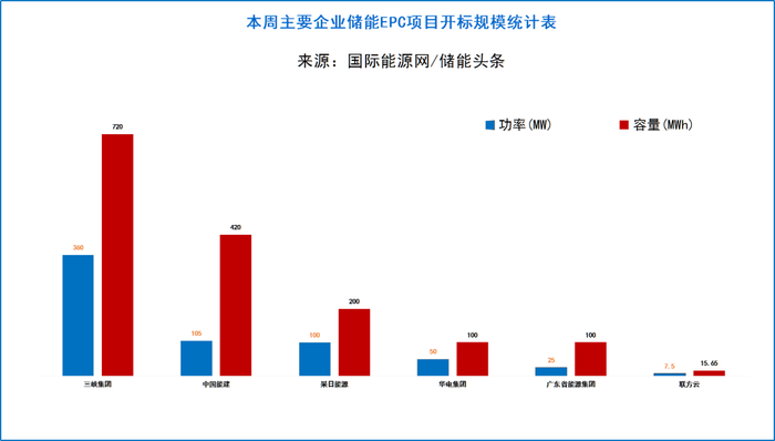 中国能建有1个项目开标,总规模为105MW/420MWh;