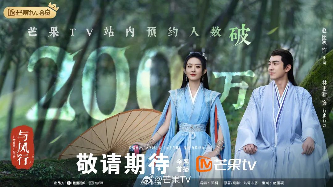在接下来,由赵丽颖、林更新主演的古装仙侠剧《与凤行》即将登陆腾讯视频和芒果TV,日前,双平台均已经进入到了预约模式,在芒果TV开启预约后不久,该剧的预约人次已经超过200万,或将成为待播剧中的新热门。
