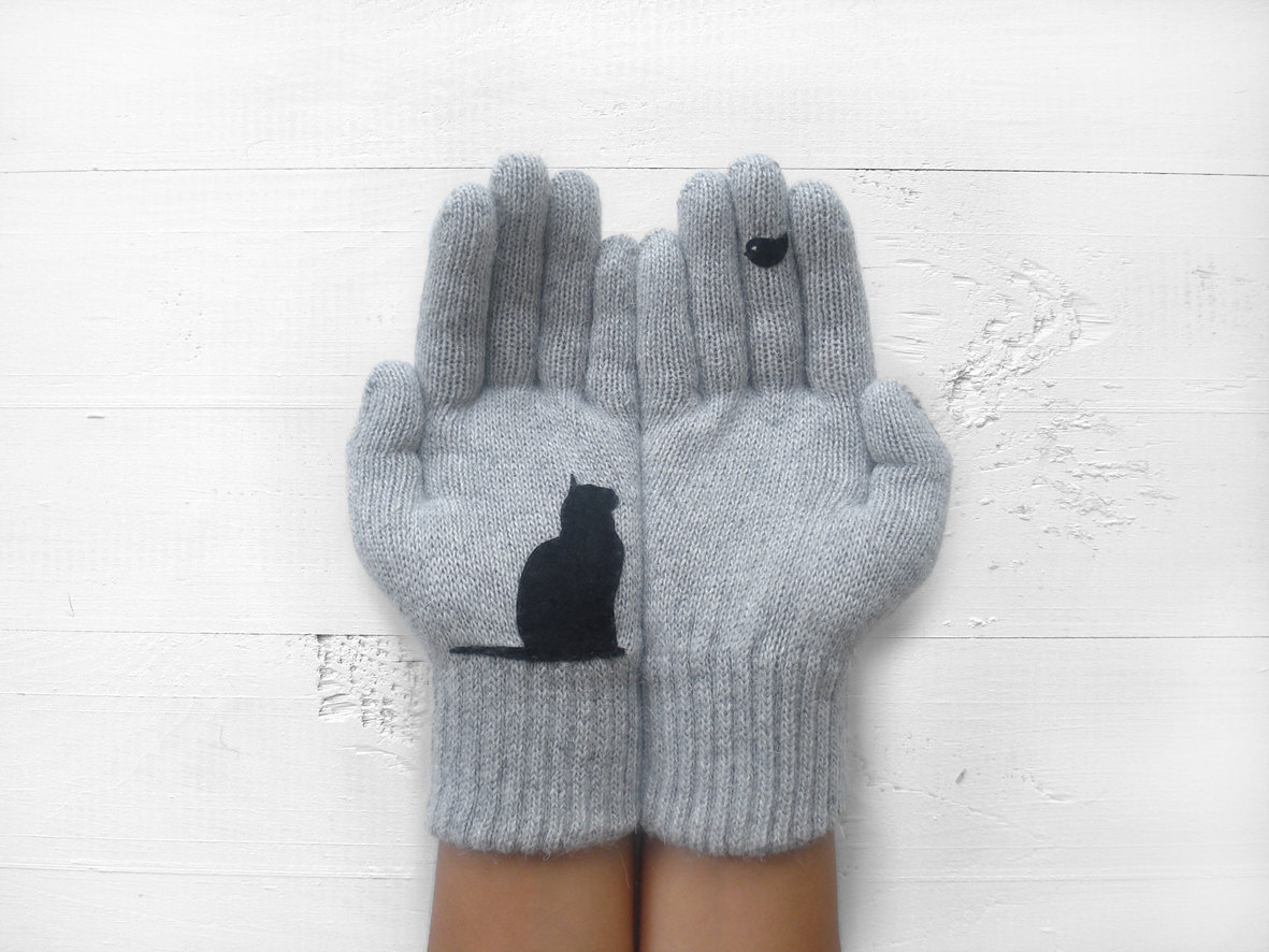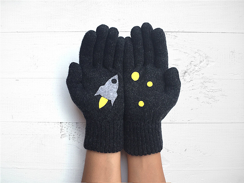 每对蕴含着小秘密的手套都有两个缝合设计:一个在左手上,一个在右手上。在有些手套上两边的图案是对称相同的,比如小狐狸的脸和闪光的心。还有一些手套上是不同的设计,呈现出某种场景,从发射到太空的火箭到盯着树上的鸟儿的猫。这家店的主人,Serkan和Öznur,想出了这种独特的设计,为手套添加一些个性,她们相信“每个设计都是有话想说”。