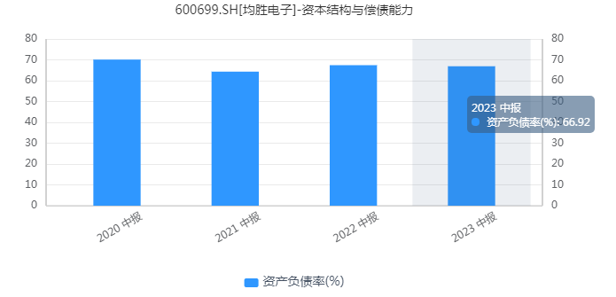 收购需要真金白银投入。均胜电子的资产负债率长期处于高位,接近70%。截止2023年上半年,均胜电子短期借款达45亿,长期借款133亿。短期偿债压力不容忽视。