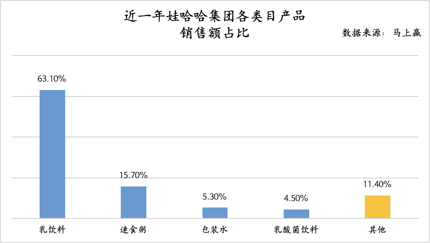 基于马上赢线下零售监测网络中的数据,娃哈哈近半年的销售额占比构成大概如下: