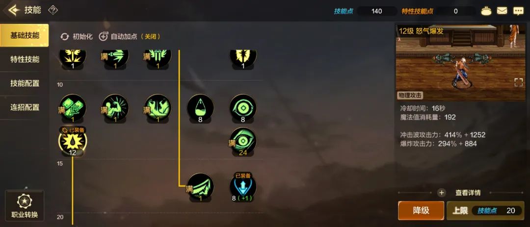 角色技能只开放到一次觉醒,不过需要指出的是,开发团队并没有死板的照搬60版本的原版设计,而是在保留角色特色的同时,增加了更多方便玩家刷图的改动。比如狂战士的招牌技能双刀变成了常驻技能(原版是时长很短的主动技能),增加了小技能愤怒狂刃,帮助玩家在游戏中期更快过渡。
