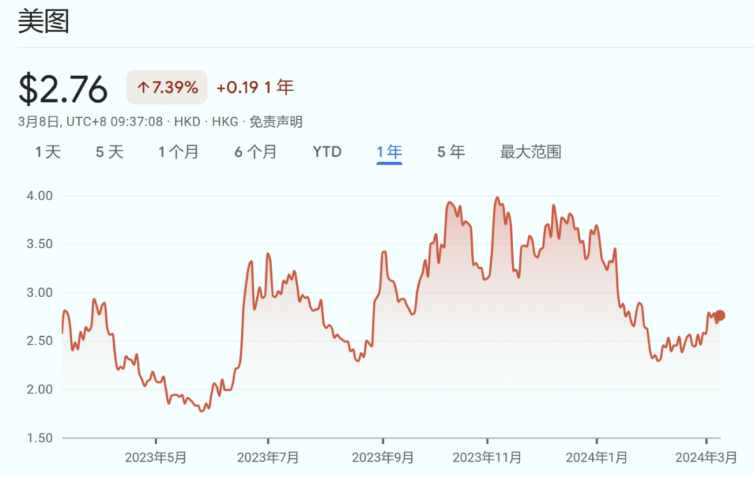 2024年1月22日发布2023年财报预告后,美图的股价再次蒙上了一层阴影,即使是收购站酷网这样的重磅决策,也未能挽回股价下跌的趋势。和去年同期相比,美图的股价兜兜转转又回到了起点。