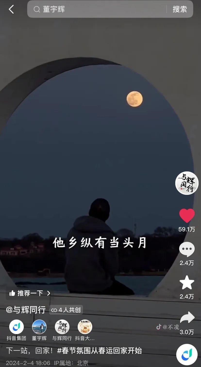 春节前夕,归乡心切的打工人不约而同地被一条短视频击中,董宇辉温暖的声音成为视频的底色,道出万千漂泊游子的心声,勾起了不少网友的浓浓思乡情。