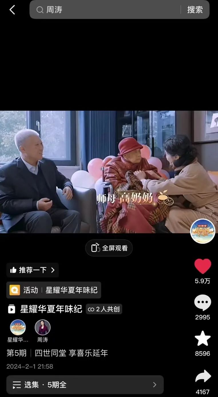 周涛则趁着年关,回合肥拜访了百岁师母一家,她与师母时隔多年的相拥感动了亿万网友。从逛早市、买菜、置办年货,年少时的场景交织重叠,呼应着团圆与美满的寓意。百家欢宴的年夜饭,绘就了一幅独属于中国人的新春图景,藏着中国人的浪漫情怀。