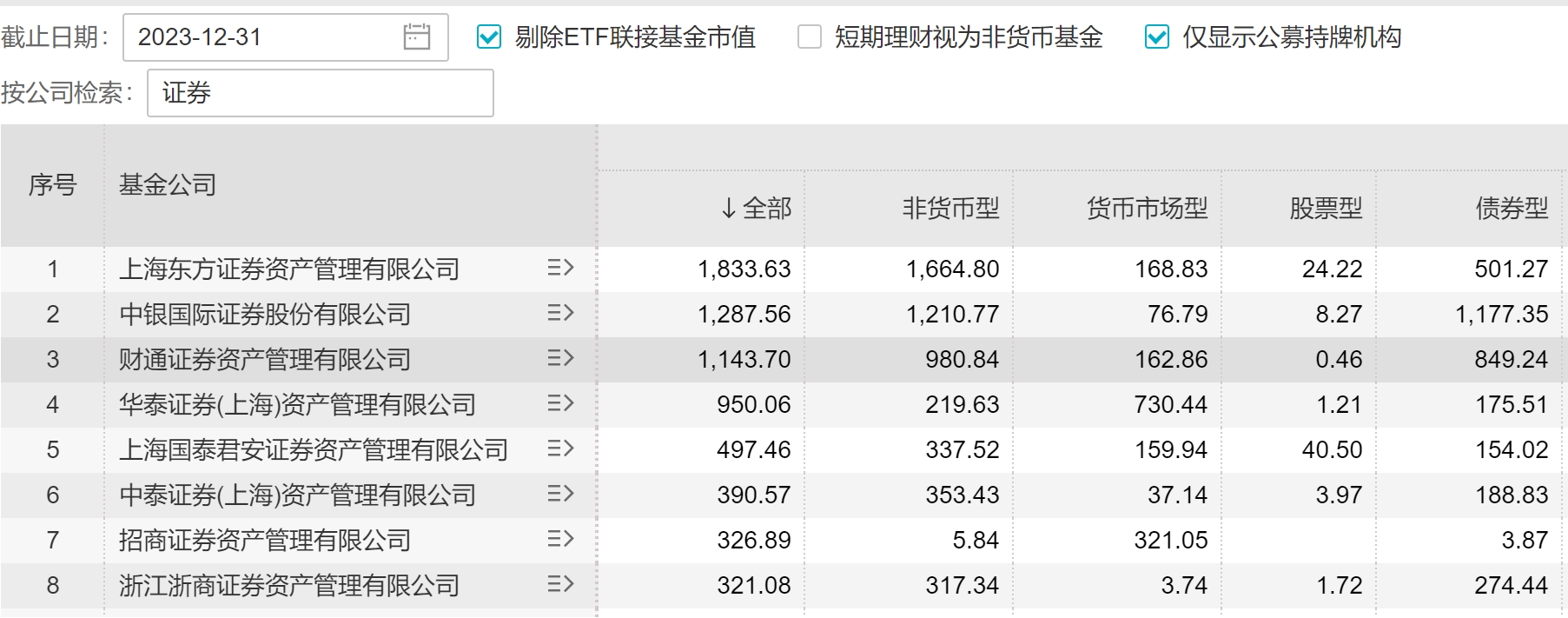 Wind显示,截至2023年末,财通资管公募基金管理资产净值达到1143.7亿元,位列公募持牌券商/券商资管第3名。