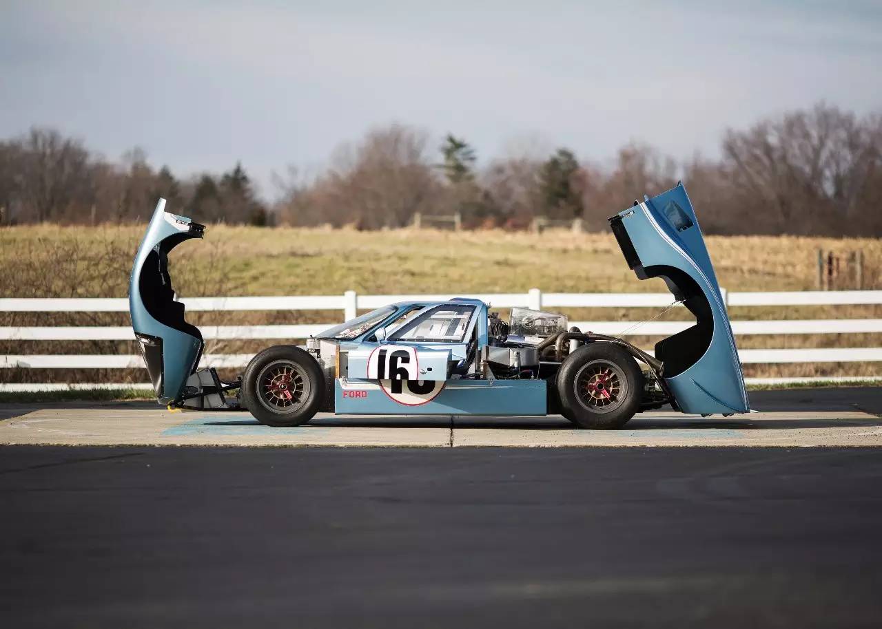 福特GT与一般的商品车最大的不同就是它身上流淌着赛车的血统。如图所示的福特GT40曾经参加了世界上最艰苦的比赛之一---勒芒24小时耐力赛。在上世纪60年代,法拉利几乎是勒芒的霸主,豪夺连续几届勒芒冠军,但法拉利私下很缺钱,于是恩佐·法拉利老爷子谋生了出售公司的想法。后来法拉利和福特开始谈判,但老爷子的原则是要自己控制赛车部门,美国人怎么可能同意?于是前期福特投入了很大精力、物力的谈判最后流产。更气人的是,法拉利后来投入了菲亚特的怀抱,在亨利·福特二世看来,自己不过被法拉利利用当做另一场谈判的筹码。他怒了,发誓要在法拉利最擅长的勒芒比赛中战胜他,随后他找来了福特赛车部门的主管:“亲自打造一台赛车,给我痛扁法拉利!”
