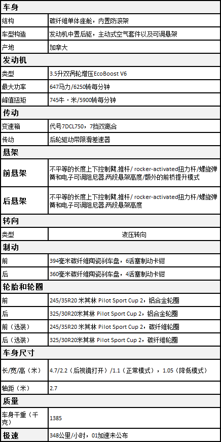 脱去信仰和历史的光环,新GT到底是一辆怎样的车?今天福特公布了车辆的完整数据: