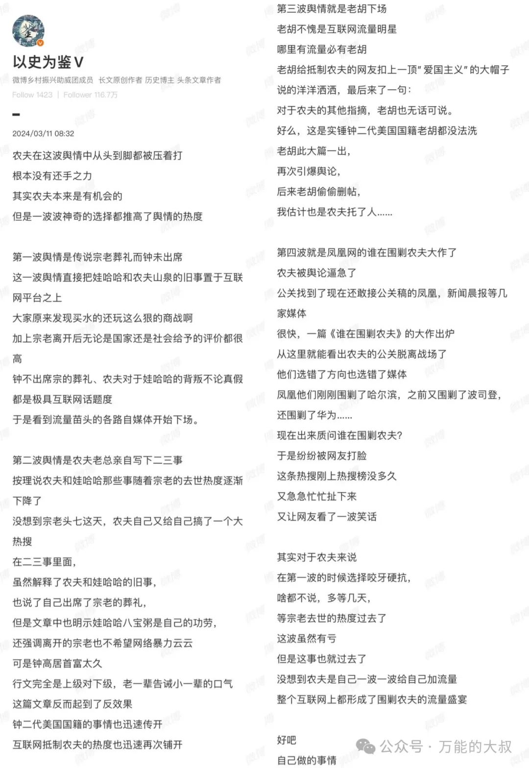 大叔甚至觉得,与几年的福岛白桃气泡水的回应相比,钟睒睒出面写信,已经代表农夫公关的巨大进步了。