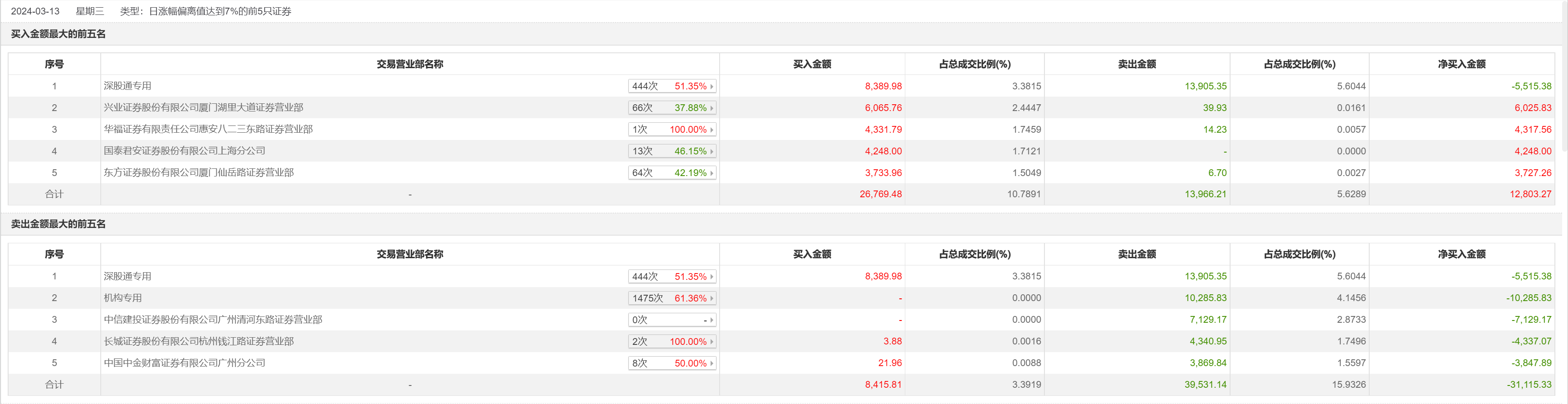3月13日,世纪华通今日涨停,成交额24.81亿元,换手率7.06%,盘后龙虎榜数据显示,深股通专用席位买入8389.98万元并卖出1.39亿元,一机构专用席位净卖出1.03亿元。