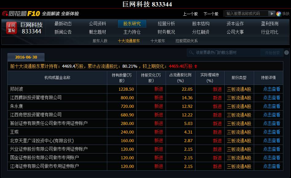 而这个价格,对于多数持有巨网的投资人来说,还是获利颇丰的。仅有部分在16年初高位买入的投资人可能会略亏,查询那一波段的交易,这部分持有量不大,需要巨网科技对这部分投资人再做耐心沟通。