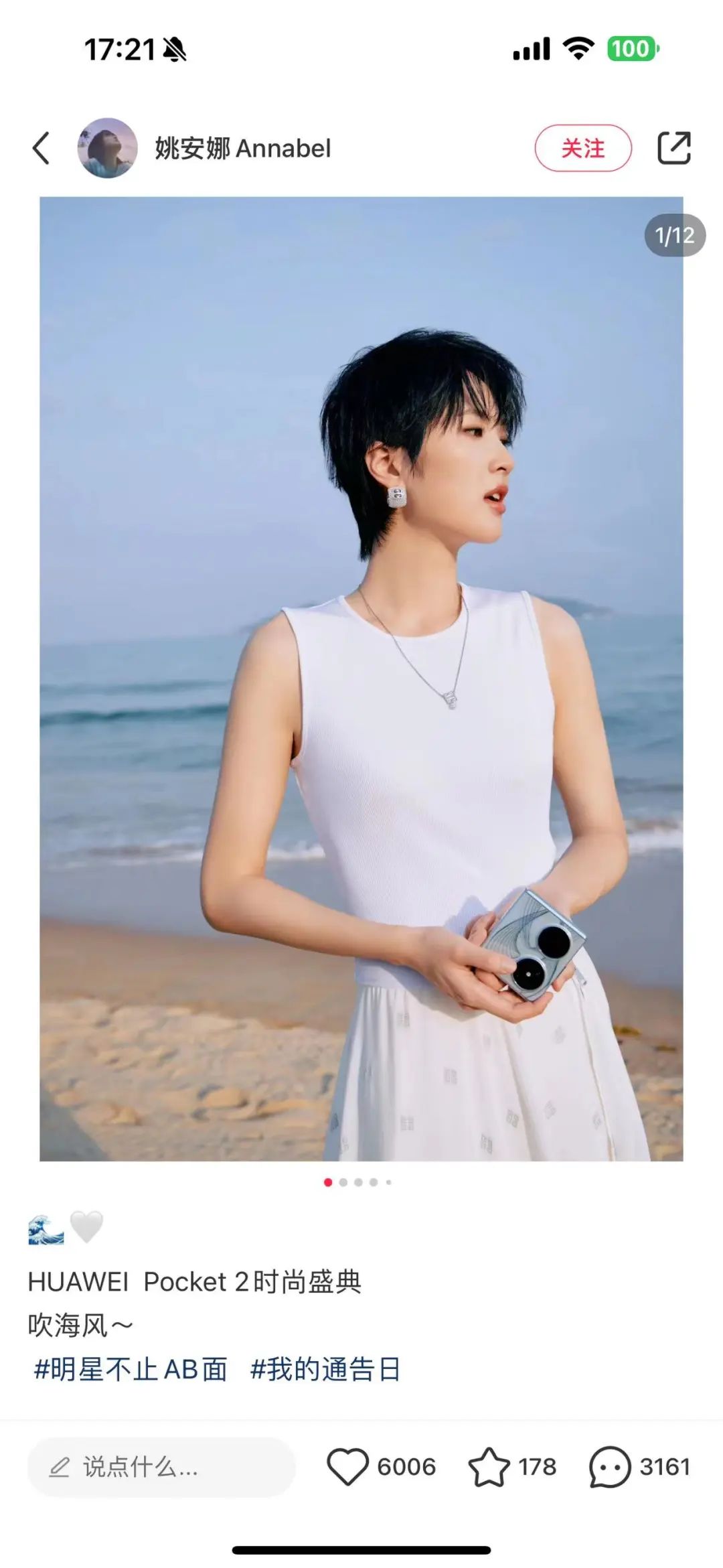 蓝色大海边际,华为“二公主”姚安娜手持一款自家最新发布的Pocket2漫步于沙滩,并于社交平台上发布了“HUAWEI Pocket2时尚盛典,吹海风”的文案。近期,她和她的电视剧新作《猎冰》,以及这款新品皆引发了热议。