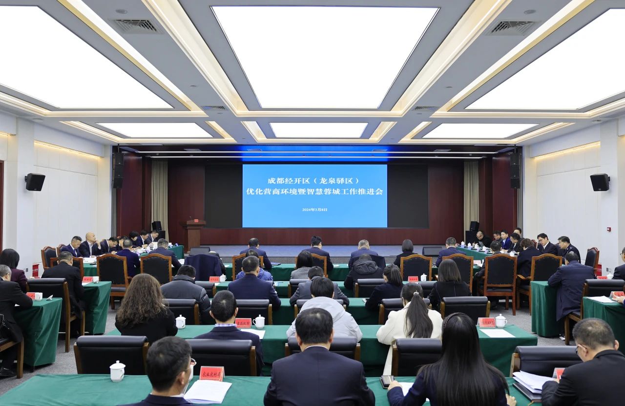 大力推动数字赋能营商环境优化,加快创建市场化法治化国际化的一流营商环境。成都经开区(龙泉驿区)召开优化营商环境暨智慧蓉城工作推进会,邱向东讲话,周健主持,钟世全张昌勇付敏出席。