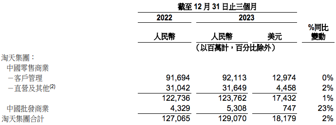 另据阿里财报显示,去年Q4,中国批发商业的营收同比大增23%,远高于淘天集团大盘2%的同比增速,也高于阿里总营收5%的同比增速。