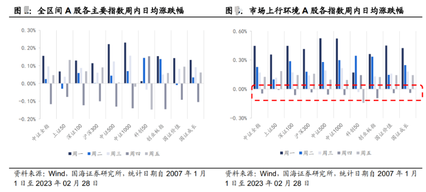 据Wind统计,A股各主要指数在各类市场环境下均能够显著的看到周四日均涨跌幅度与上涨概率均低于周内其他日期。