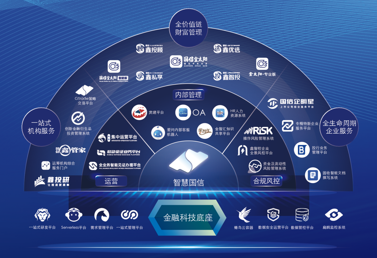 在大投行业务领域,国信证券早在2018年即在业界率先实现股权、债权全业务全流程深度数字化管理,全板块智能发行,底稿电子化管理。2020年起,不断打造了19个投行智能工具,并广泛应用数字员工,全面提升数字化投行服务能力。