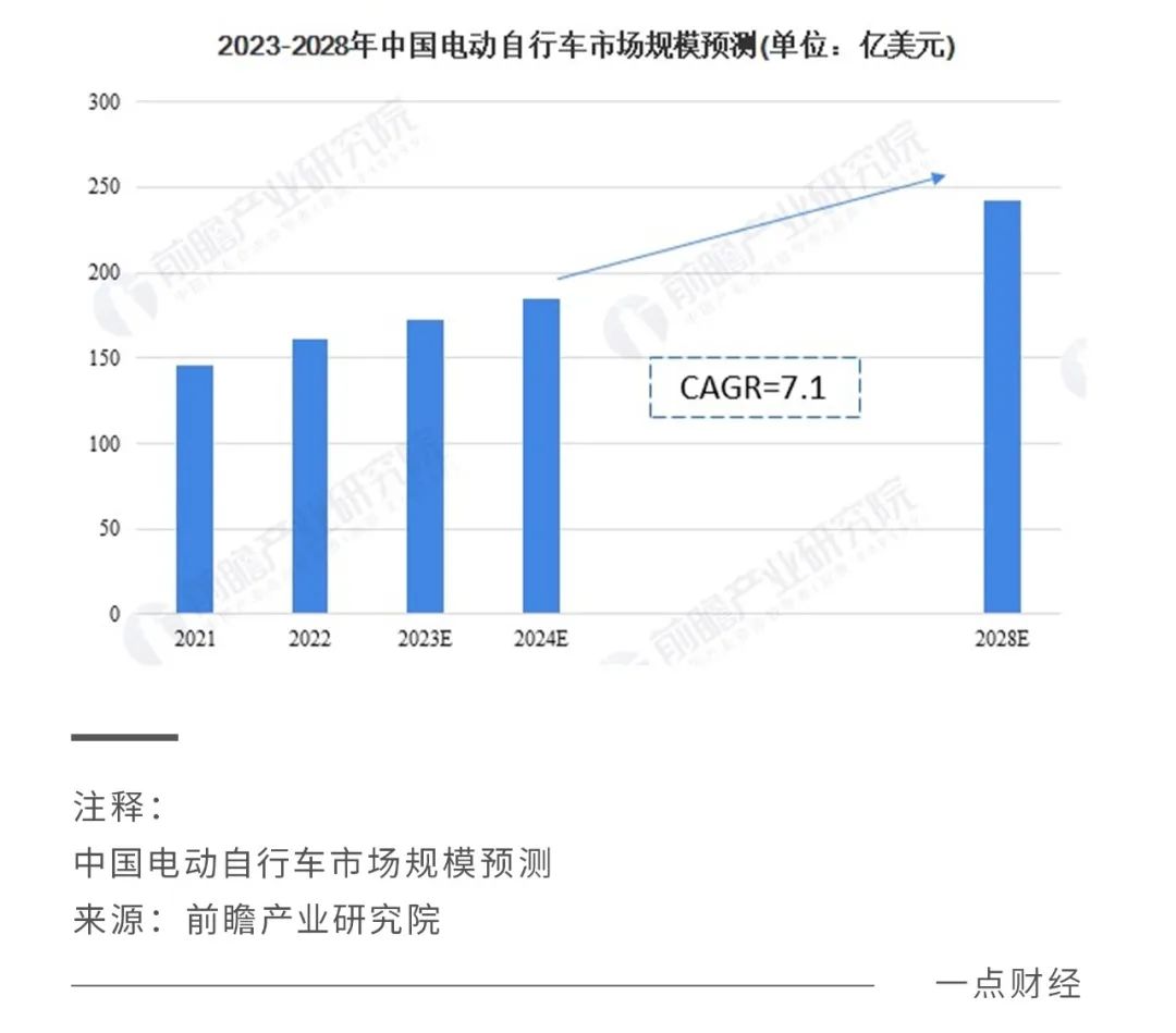 前瞻产业院预计,2023年至2028年我国两轮电动市场规模将由172亿美元增长至242亿美元,俨然一条千亿人民币级别的巨大赛道。