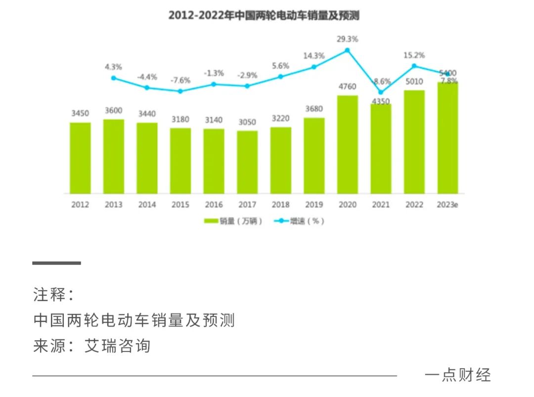 具体表现在市场上,艾瑞咨询《2023年中国两轮电动车行业白皮书》预测,2023年两轮电动车销量增幅由同期的15.2%下降至7.8%。华创证券也预测,未来3年行业销量复合增速将由2019-2022年的18%下降至5%-10%。