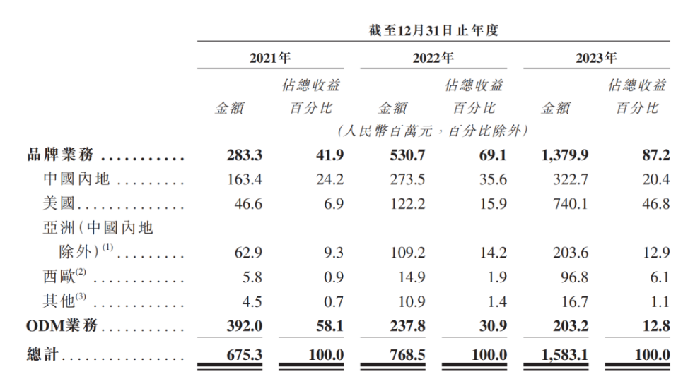 体现在总营收上则更为明显:2021年、2022年及2023年,卡罗特在中国内地以外市场的收益分别为5.037亿元、4.915亿元及12.556亿元,分别占总营收的74.6%、64%及79.3%,海外营收接近八成。