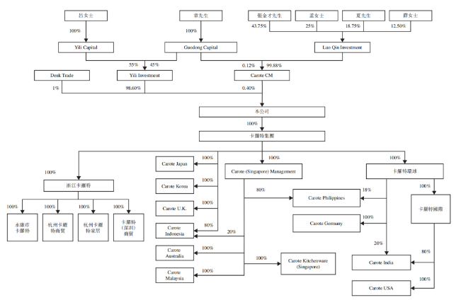 招股书显示,目前公司由Yili Investment持股98.6%,后者由36岁的章国栋、吕伊俐夫妻二人全资控股,二人分别担任卡罗特的执行董事、董事会主席、首席执行官以及执行董事、首席产品官职位。