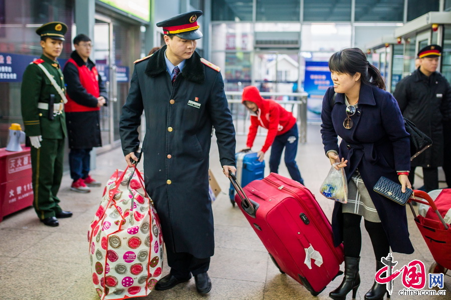 马少雄,西站的检票员,今年是他在岗位上度过的第五个除夕,家在河北保定的他已经习惯了这种过年不回家的状态。中国网 郑亮摄影