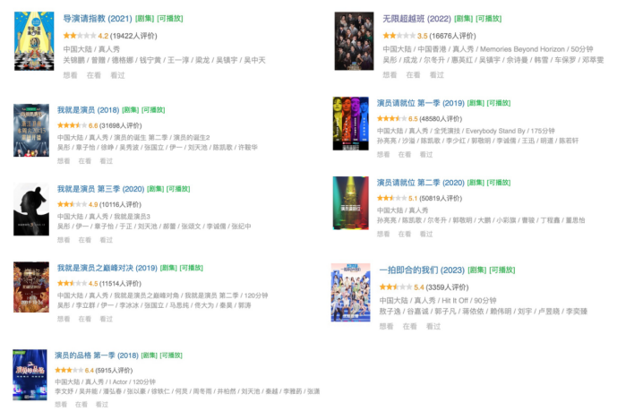 近八年里,综艺演技综艺的评分几乎全部在及格线之下。好像不管怎样,“被骂”一直是它们的宿命。