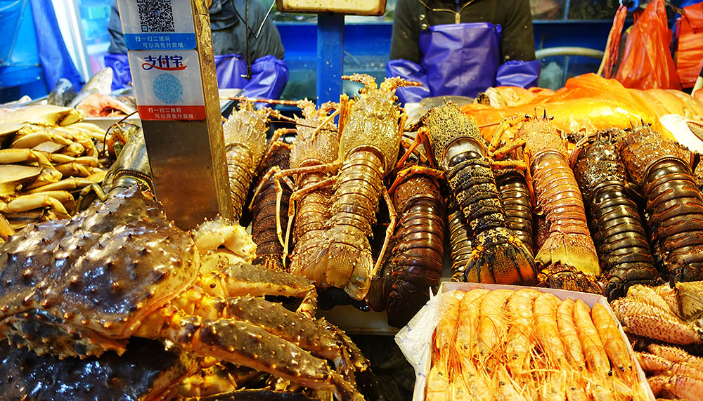这里有超大个儿的海鲜,在暖灯的照射下,让人垂涎欲滴。