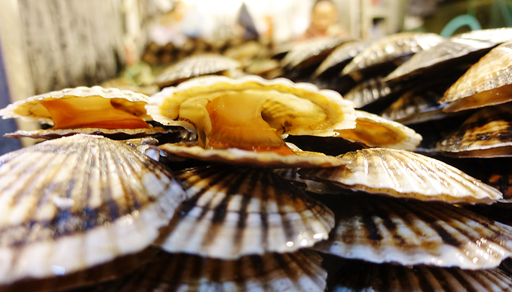 贝类被整齐的码放在一旁,像是等待检阅的士兵。