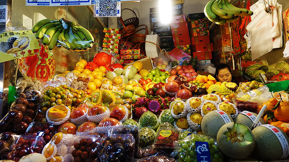 水果摊这里有五颜六色又多滋多味的水果。不过,如果我是老板,我会把这些水果按照“彩虹色”的顺序码放,因为这是对初级强迫症患者的基本尊重啊。