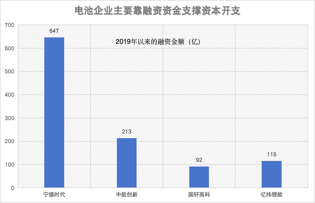 2019年以来,仅宁德时代等四家电池厂通过定增、非公开发行、发债等方式的融资额已经超过1000亿。