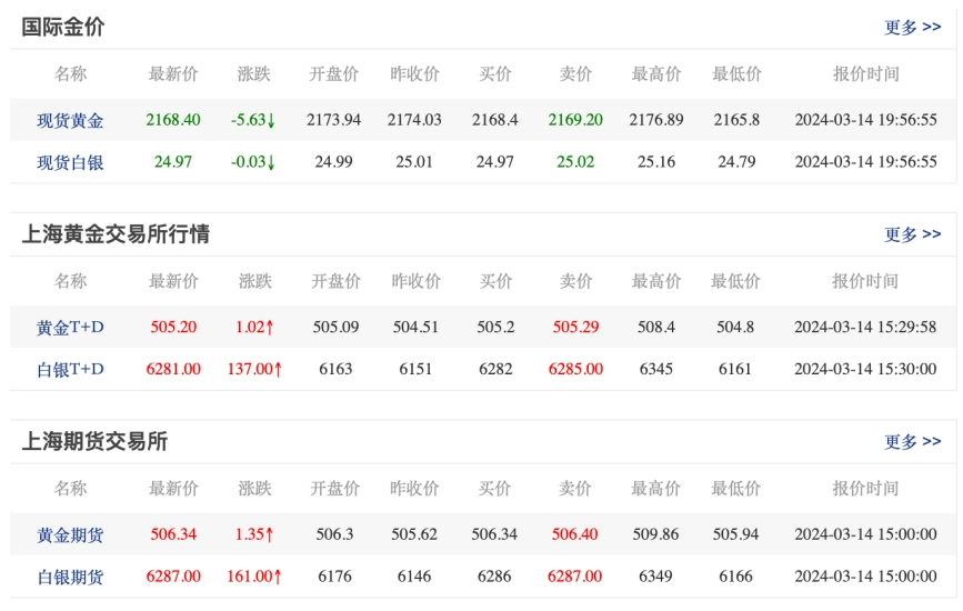 受到带动,以人民币计价的黄金价格也在强劲上涨。截至3月14日下午,上海黄金交易所的黄金T+D为505元/克,上海期货交易所黄金期货为506元/克。