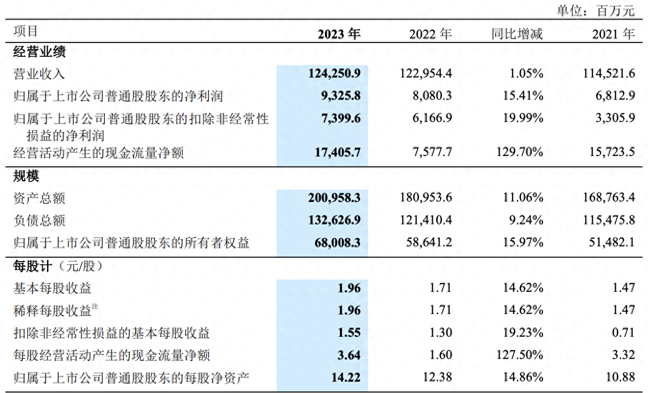 根据财报显示,2023 年,中兴通讯实现营业收入1242.51 亿元,同比增长1.05%;实现归母净利润93.26 亿元,同比增长15.41%;扣除非经常性损益的归母净利润 74.00 亿元,同比增长 19.99%。