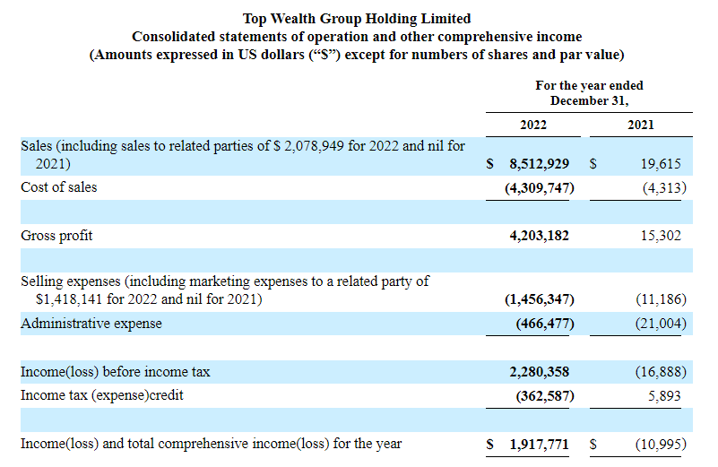 招股书显示,2021年、2022年,富原集团营收分别为1.96万美元、851.29万美元,凭借鱼子酱业务,富原集团一举扭亏,2022年净利润达到191.78万美元。