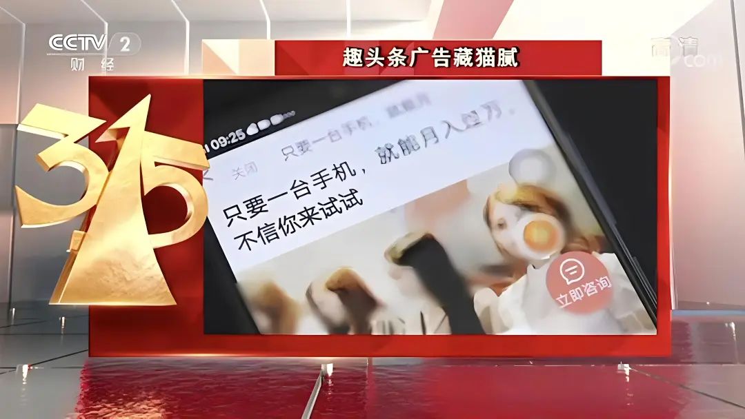 2020年,趣头条被315晚会曝光。一位字节跳动的公关说,当时他们也有点紧张。2018年3月,315晚会没结束半个月,央视的《经济半小时》栏目就曝光了今日头条上存在黑五类广告的问题。