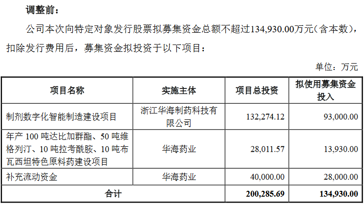 2023年12月底,华海药业发布公告称,公司拟募资12.1亿元的定增项目获得了中国证监会的同意。扣除发行费用后,募集资金将用于制剂数字化智能制造建设项目、补充流动资金。