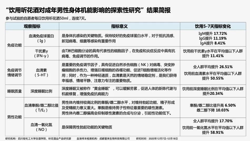 搞了场“中医理论指导白酒健康化研讨会”,发布了一份《饮用听花酒对成年男性身体机能影响的探索性研究》简报。