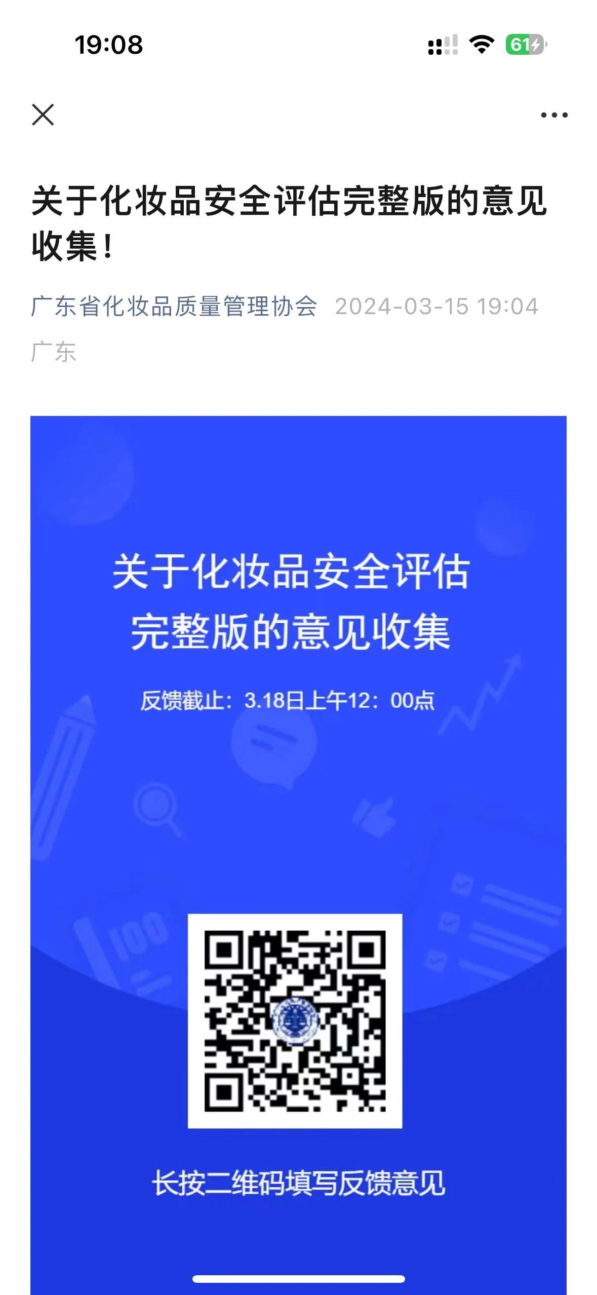 巧合的是,就在文件引发讨论的当天,广东省化妆品质量管理协会直接在同名公众号内发布了一则《关于化妆品安全评估完整版的意见收集》的文章。