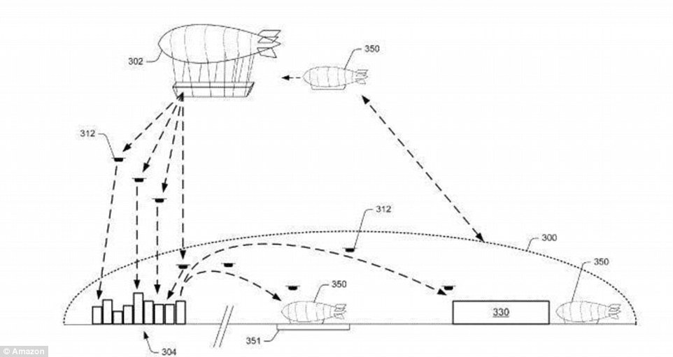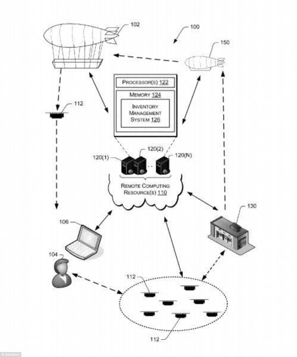 近期流出的一份专利文件显示,美国电子商务巨头亚马逊正计划使用巨型空中仓库来帮助无人机进行货物交付。这项专利被称为“机载履带中心”(Airborne Fulfillment Centers,AFC),一些储存着大量产品的飞艇或飞船在4.5万英尺的海拔高度上盘旋,然后部署无人机在几分钟内交付货物。