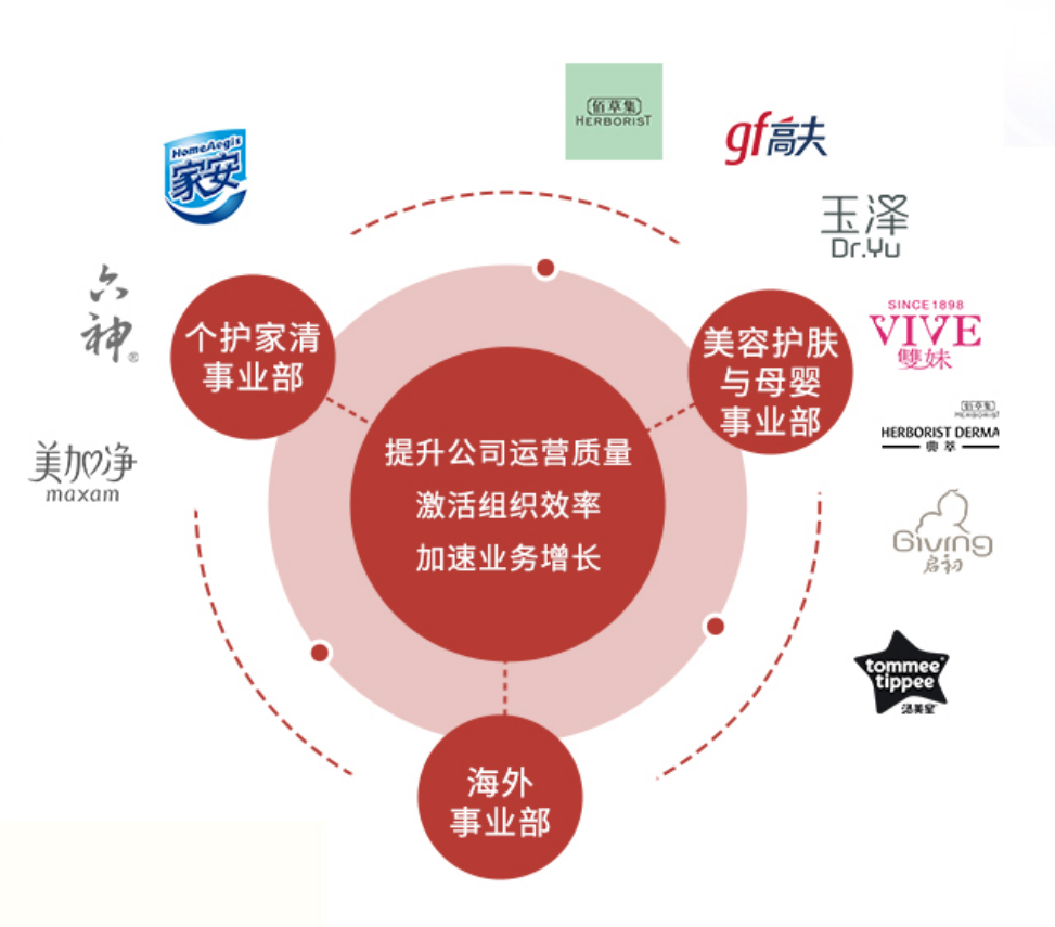 2023年10月,上海家化宣布设立美容护肤与母婴事业部、个护家清事业部、海外事业部,以品类决策为主体,各事业部对业绩结果负责。