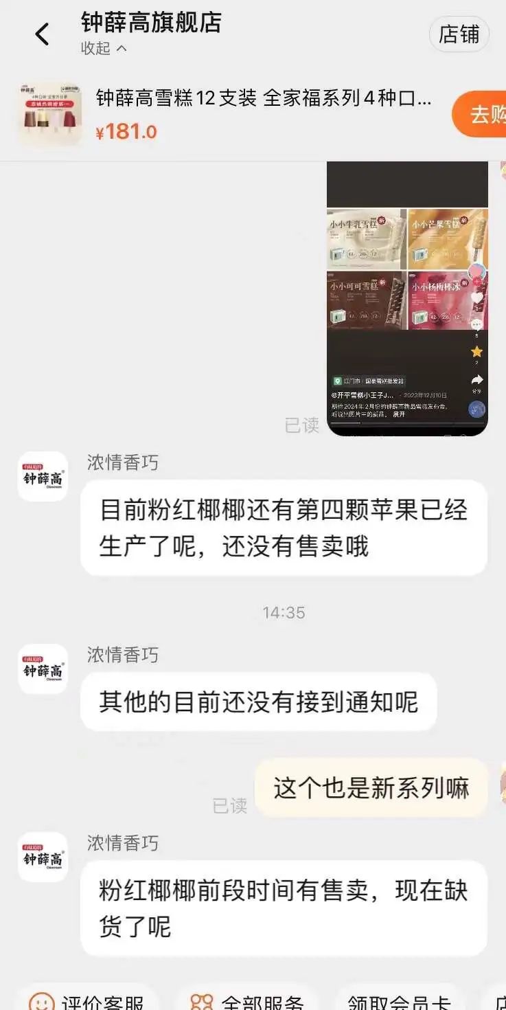 钟薛高官方旗舰店客服回应新品上新相关事宜。