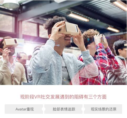 现阶段的VR社交,已经完成了针对社交对象的位置、方向、基本姿态、头部位置等的跟踪。这样的VR社交,已经可以给参与者极强的社交体验,但这只是VR社交的开始,还远远不是未来。如果将VR社交的发展分代的话,这充其量也就是个第一代而已,还只满足了最基本的需求:可以和对方交流,能看见自己的手和对方的头与手等等。真正的顶级VR社交体验,应该是:在虚拟的环境中,能和对方进行场景上的交流,同时还可以观察到对方的表情和注意力。