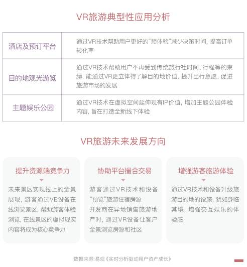 2.VR技术在酒店及预订平台、目的地观光游览和主题娱乐公园等旅游细分领取具有典型性。